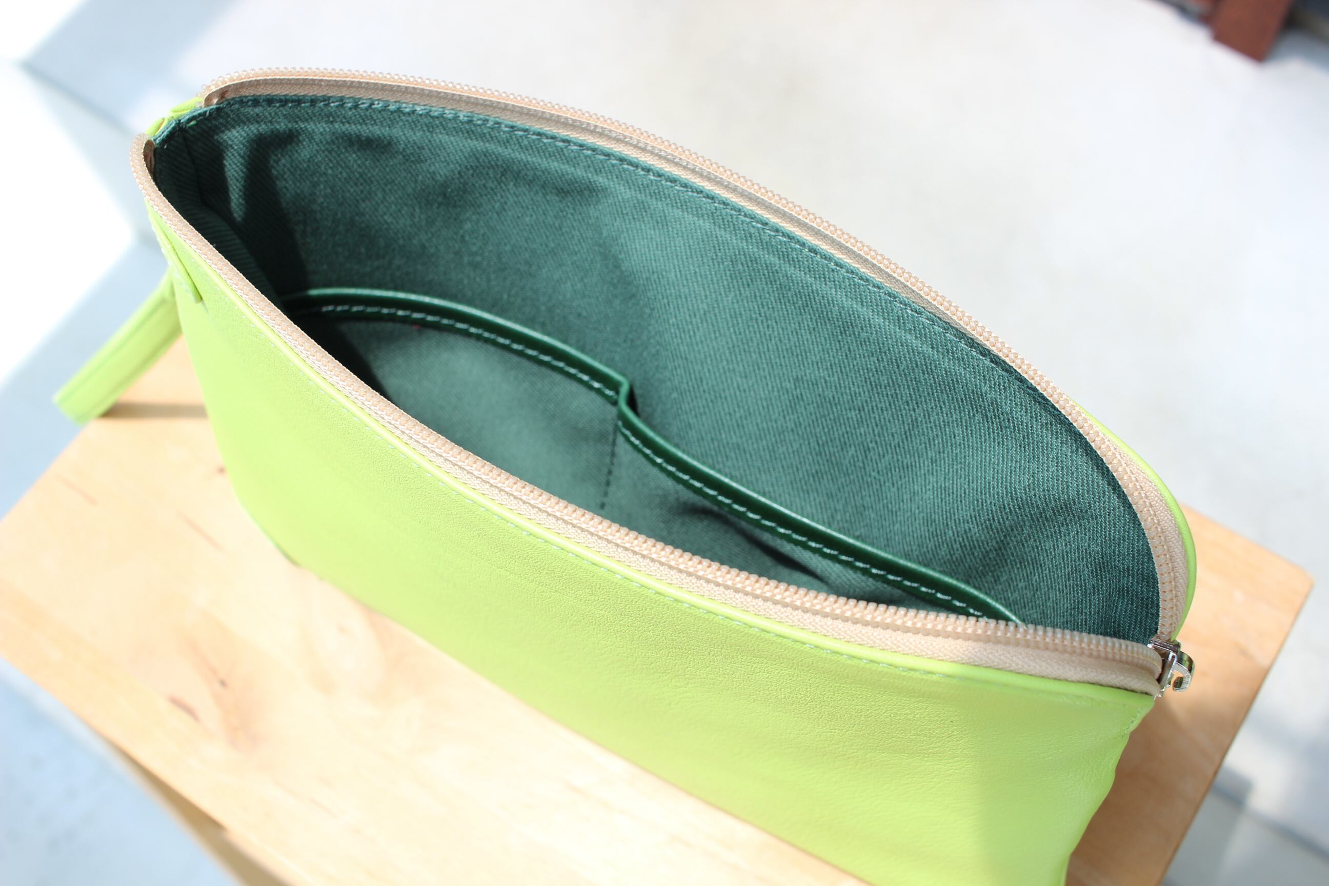 「もっちりレザー」クラッチバッグ ライムグリーン