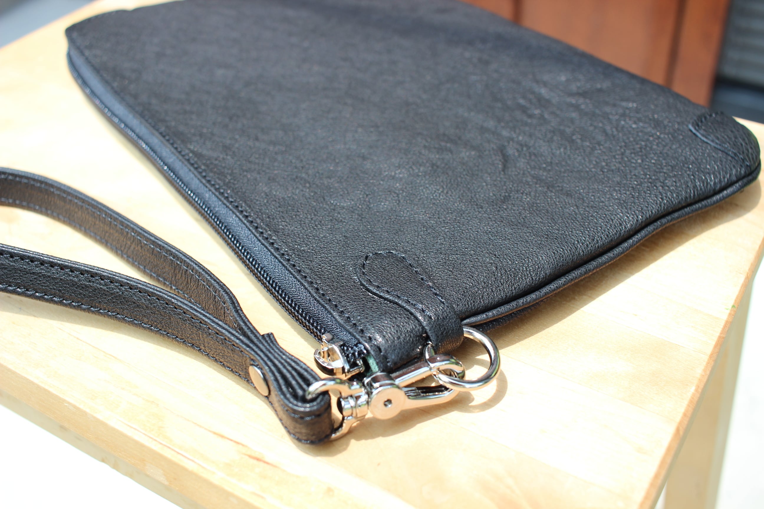 経年変化を愉しむ – ゴートレザー クラッチバッグ(ブラック)