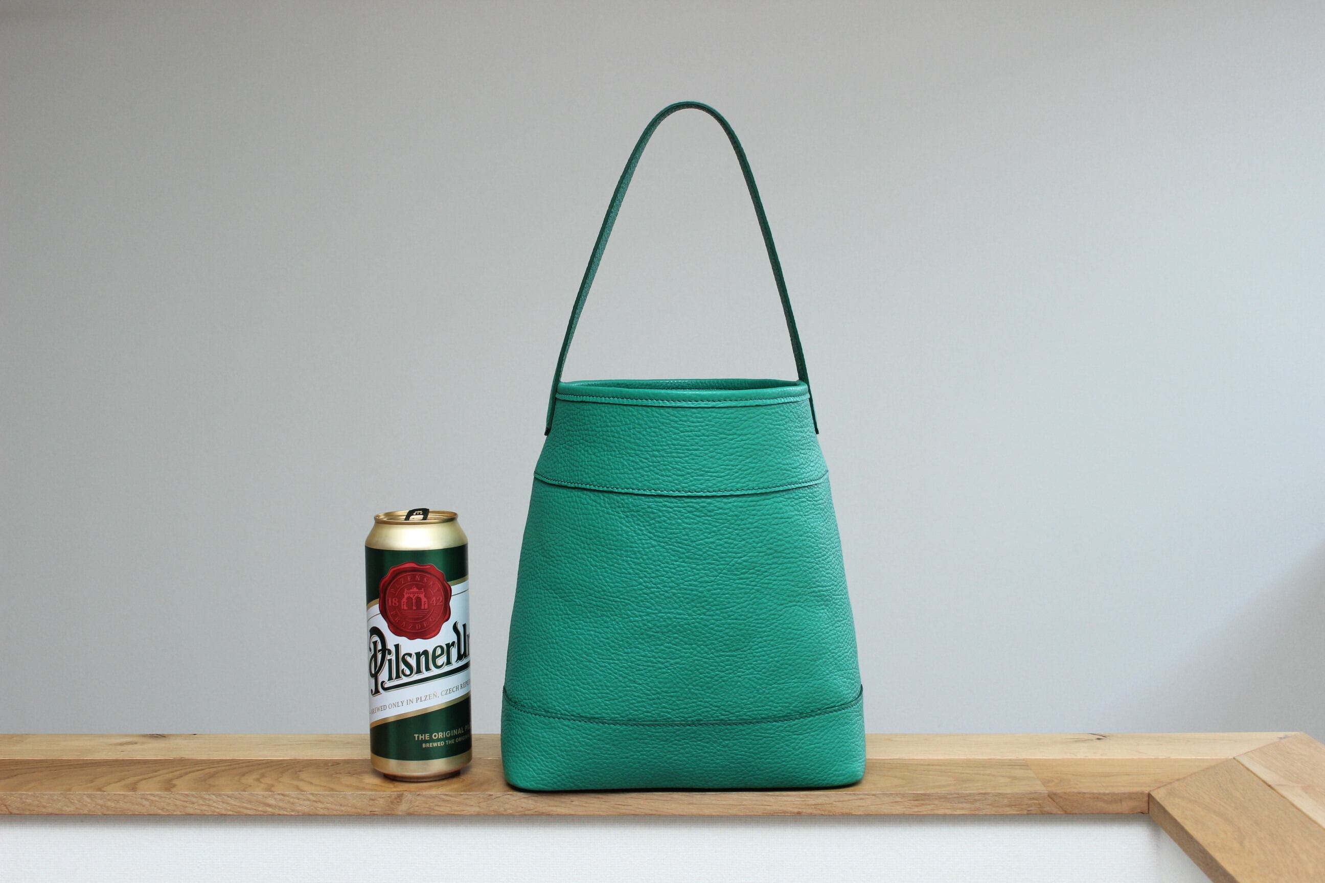 「軽やかに持ち運べる、鮮やかなグリーンの本革バッグ。」