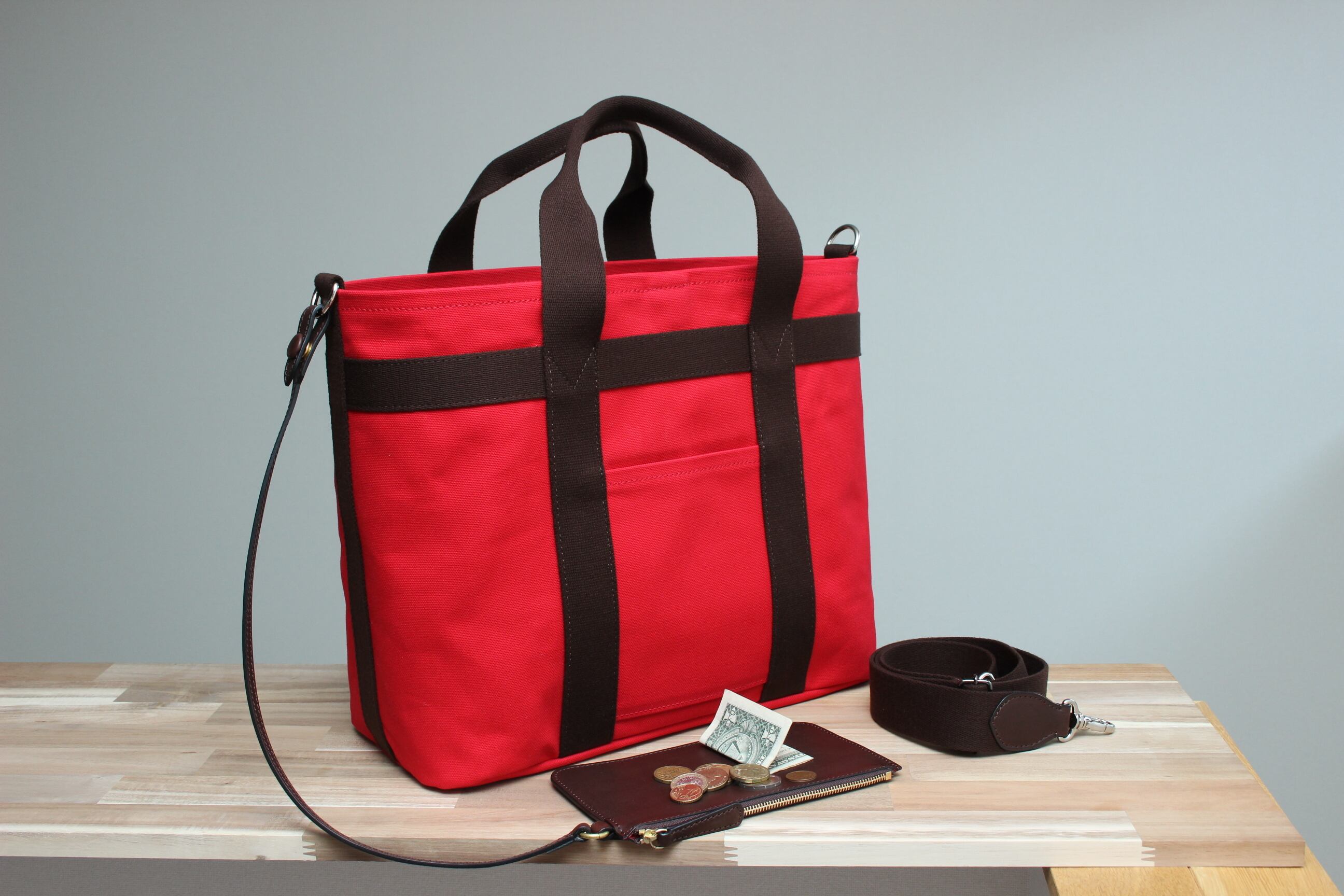 レッドのキャンバスとこげ茶のウェビングテープが、程よい存在感を生む。