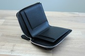 札入れはガバッと開き、お札を折らずに収納できるから、中はいつも整った状態に。